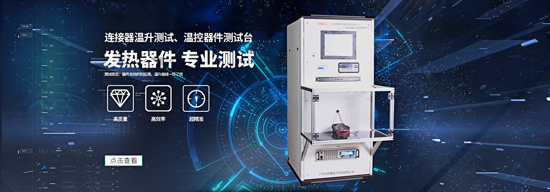 廣州市榮鑫電子科技有限公司坐落于美麗的花城廣州,公司自2002年成立以來,憑借雄厚的技術實力和速捷的配套生產能力,以及良好的信譽,贏得了全國多家著名企事業單位的青睞。公司現推出八大系列產品:溫度溫升測試儀系列、產品安全測試系列、負載柜系列、電容器測試系列、鎮流器、觸發器測試系列、LED燈具測試系列、電機、壓縮機測試系列、家電測試系列,供客戶選擇。 一直以來我們專注高端產品,拒絕平庸,致力打造智能、人性化的檢測設備,以客制化定制為服務中心,理性的引用客戶的要求與建議,滿足客戶需求為己任。同時我們在經營理念上:以精、誠的精神為方針,以為客戶提供先進高端產品與優質服務為宗旨,從而與客戶取得共贏!這都源于我們的定制服務。公司擁有專業的研發團隊、專業的銷售團隊及專業的售后服務團隊,...